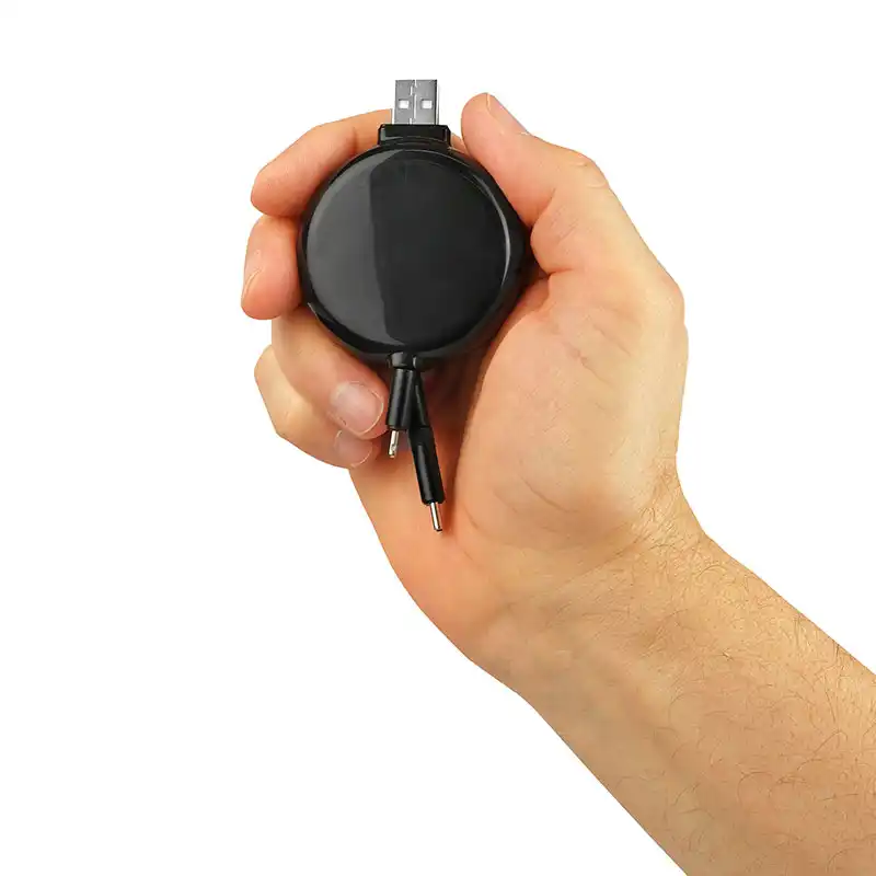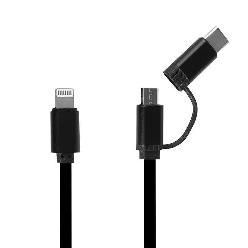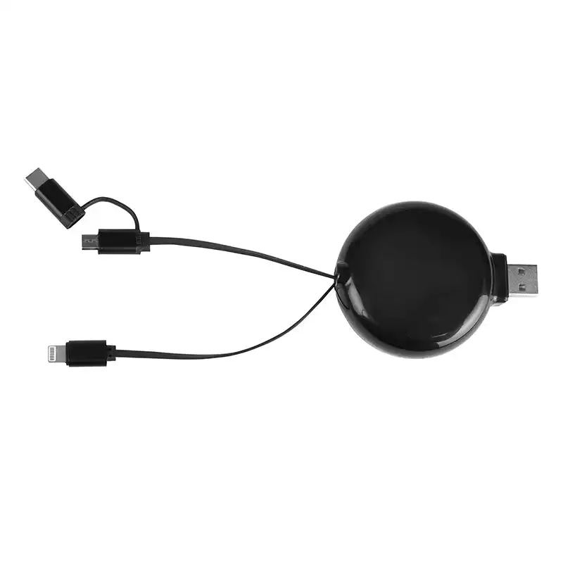 โซลูชัน 3-in-1 อเนกประสงค์ที่มีตัวเชื่อมต่อ Lightning, Micro-USB และ USB-C ในตัวบนม้วนเก็บเดียวเพื่อความเข้ากันได้สูงสุด